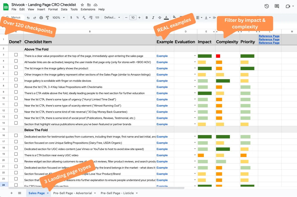 Instead of leaving you guessing, the checklist + GPT helper shows you exactly what to fix on your landing page. You’ll see the same principles top CRO teams use - structured, prioritized, and mapped to revenue impact.